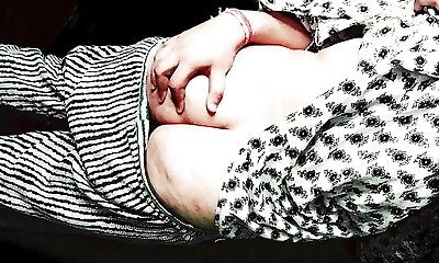 My wife's baps and nipple press by her senior school friend while he visit my home to see her and they enjoying in front of me