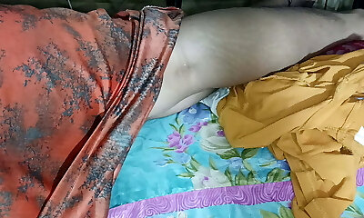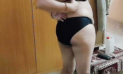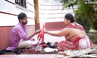 While the Desi stepmother washes bra & underpants, stepmom took off the stepson's pants and Naked him, Then asks him to fuck her - Spunk
